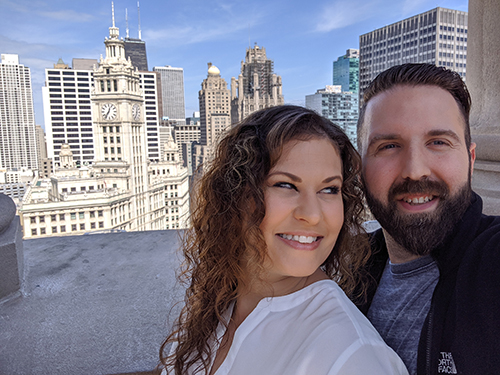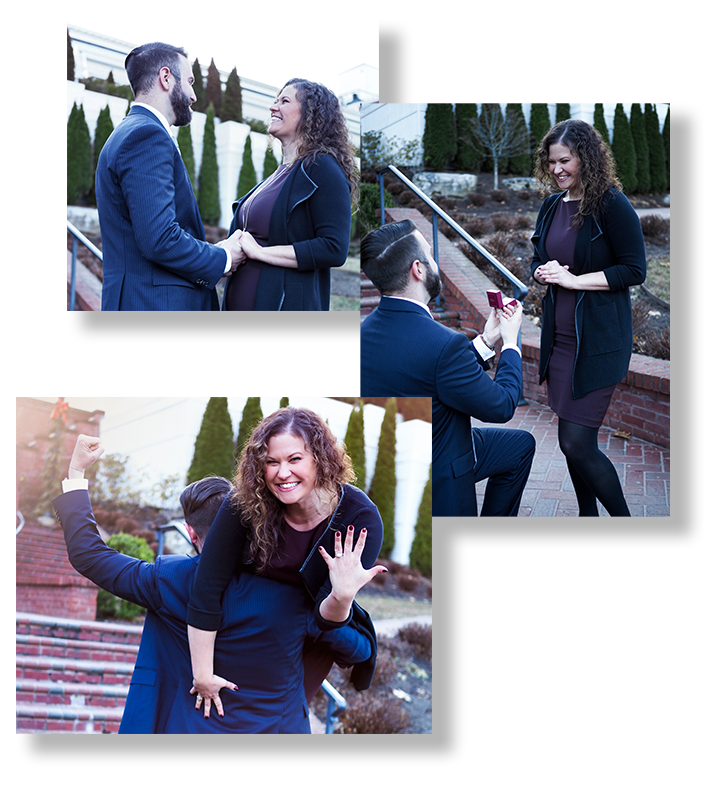 So, I enlisted the help of our longtime friends, Caroline & Dale to help me pop the question at the Omni Homestead Resort in Hot Springs, Virginia. Just as the sun was about to set over the mountains, and with a whole ice skating rink adjacent to us, we walked down cascading stairs where we stopped just shy of the bottom.